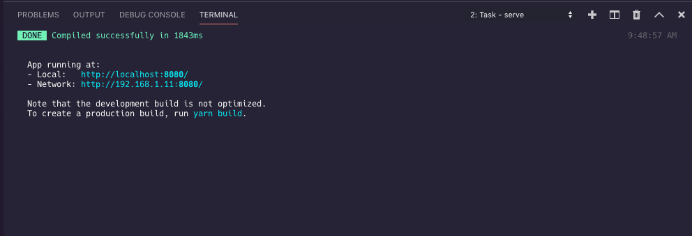The first way to run your VueJS applications from Visual Studio Code is the one you might have already learned about and that is by using the integrated terminal. If you're opening up a new terminal/command prompt to run your projects this will speed things up and bring everything back to Visual Studio Code.